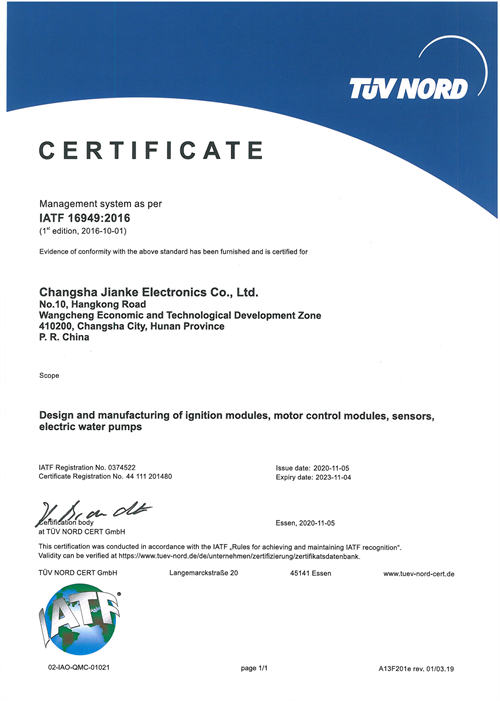 IATF16949:2016質(zhì)量管理體系認(rèn)證證書: