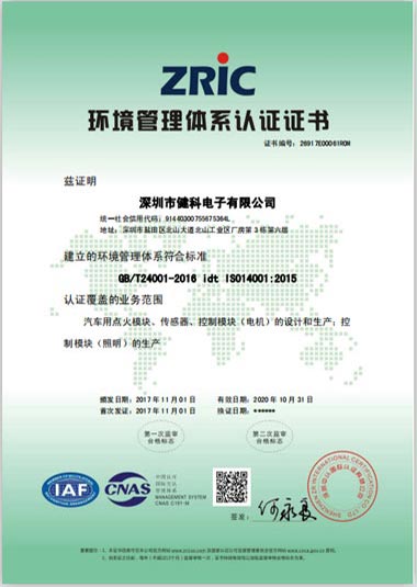 健科電子ISO14001/OHSAS18001體系順利通過認(rèn)證,于2017年11月1日正式頒發(fā)了證書。